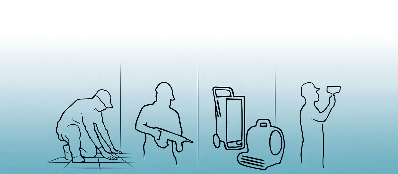 Nach der Trocknungsmaßnahme übernehmen wir nahezu alle Arbeiten zur Wiederherstellung, mit Ausnahme von Installations- und Elektroarbeiten. Für diese Arbeiten sowie für die Leckortung haben wir professionelle Partner, die uns unterstützen. Kontaktieren Sie uns gerne für weitere Informationen.